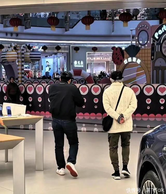 霍震霆和霍启刚对新能源汽车更感兴趣,把店里的样车看了一个遍。看到这张照片我们才发现,霍启刚手里还拎着一个保温杯。