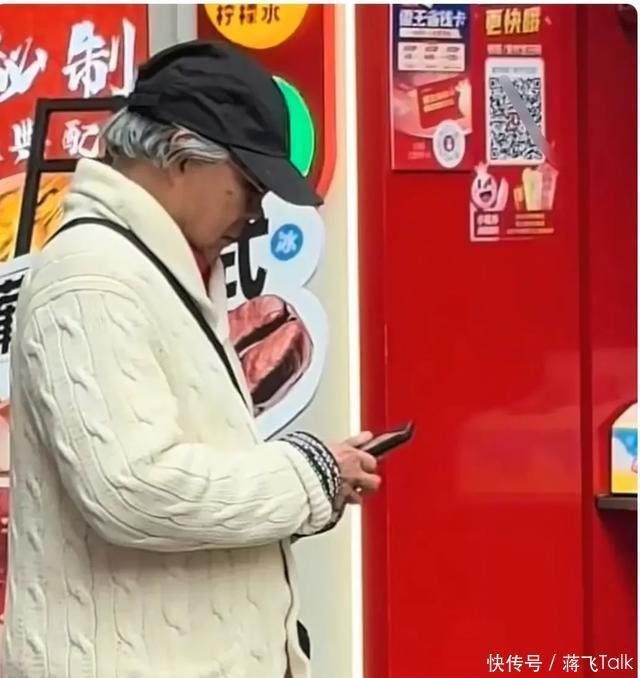 上了年纪的霍震霆站在店外刷手机等大家,大孙子拿到奶茶第一口给爷爷霍震霆喝。