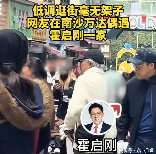 郭晶晶一家南沙逛街被偶遇,喝蜜雪冰城逛华为,霍震霆霍启刚也在