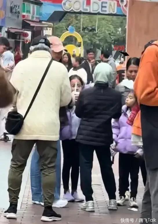 一家人其乐融融,和普通的家庭慢悠悠地逛街,说说笑笑,太接地气了,完全打破了大家对豪门生活的刻板印象。