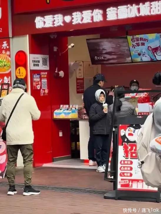 想不到,郭晶晶带着孩子们会买几元的蜜雪冰城喝。郭晶晶帮孩子点单,霍启刚负责买单,买完单不忘给店员展示付款信息。